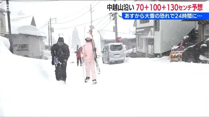 そして、23日夕方までの24時間には22日までの降雪を上回り、中越の山沿いで130cm・平地で70cmと予想されています。