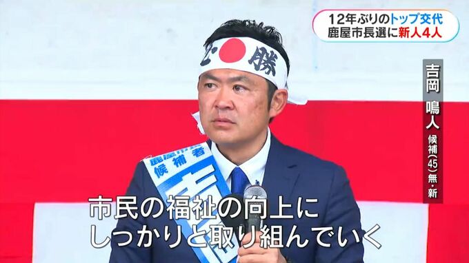 新人の吉岡鳴人さんは、鹿屋市吾平町出身の45歳。鹿屋市議を2期7年半務めました。市長報酬の30%削減や、2歳以下の保育料無償化などを訴えています。
