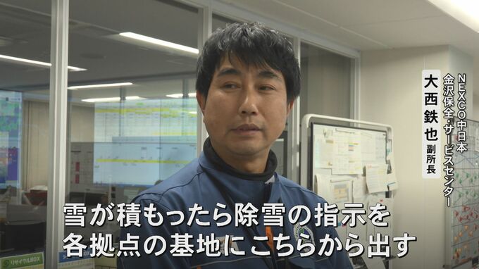 NEXCO中日本 金沢保全・サービスセンター 大西鉄也副所長「凍結防止のための薬剤の散布の指示をしたり雪が積もったら除雪の指示を各拠点の基地にこちらから出しています」