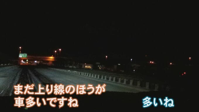 「まだ上り線の方が車多いですね」
