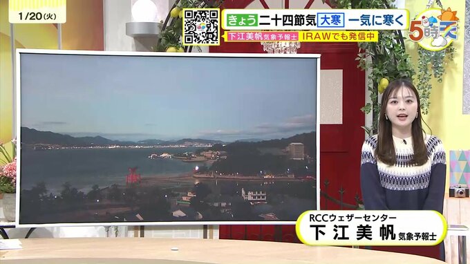 きょう20日(火)の広島県内は、きのうまでの暖かさから一転、日中の気温がほとんど上がらず北風が冷たい一日でした。最高気温は、多くの地点で未明に観測され、日中は1ケタの寒さでした。あすは強い冬型の気圧…