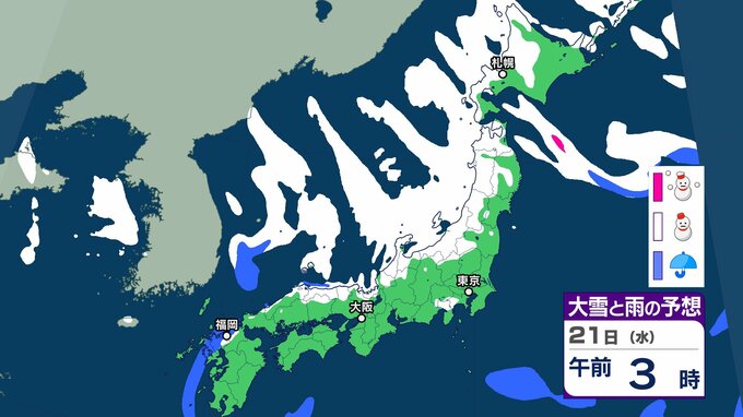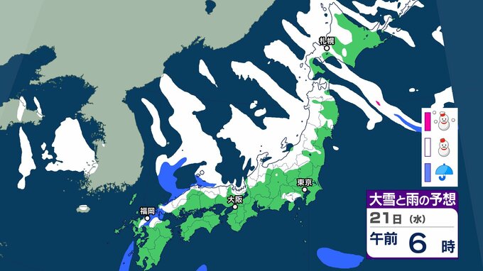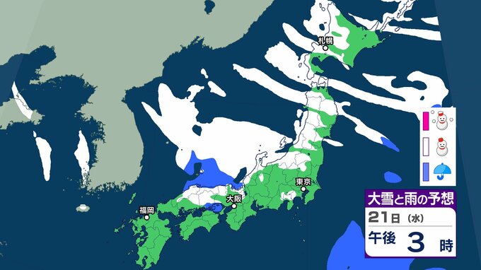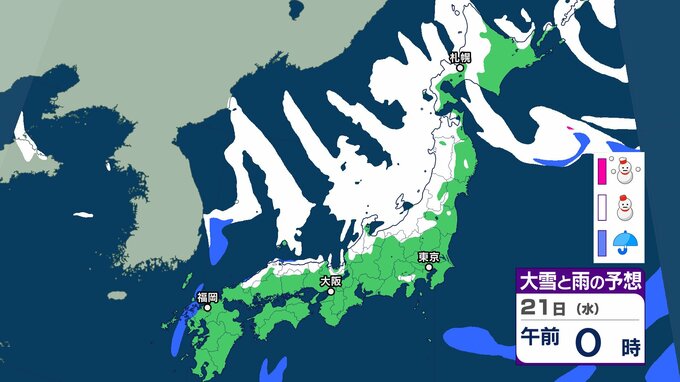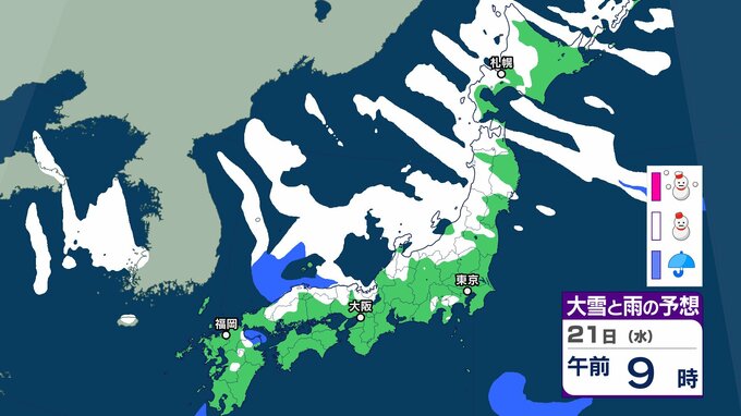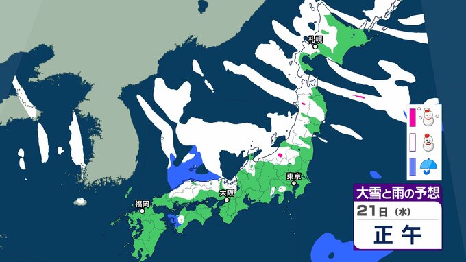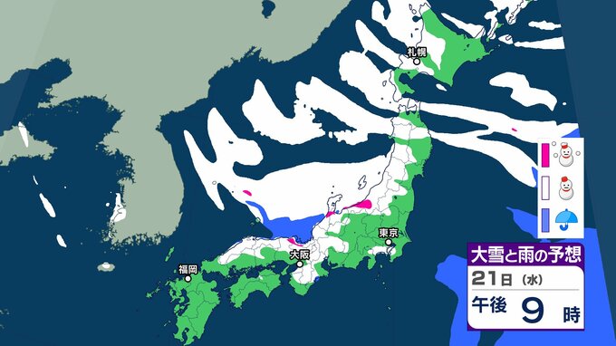 気象庁によりますと、21日以降は日本海にJPCZ(日本海寒帯気団収束帯)が形成され、22日(木)にかけて発達した 雪雲が近畿北部から山陰を中心に、その後24日(土)にかけて北陸地方を 中心に流れ込むでしょう。