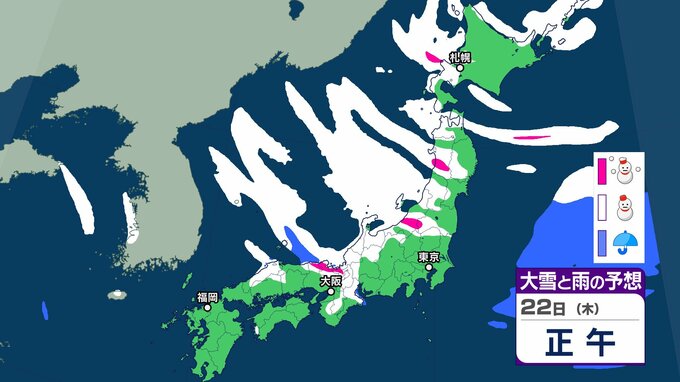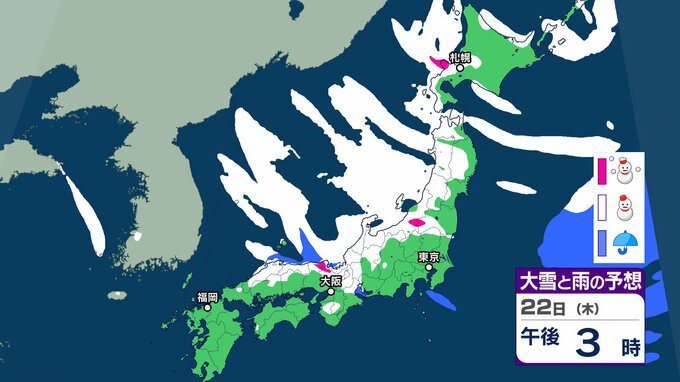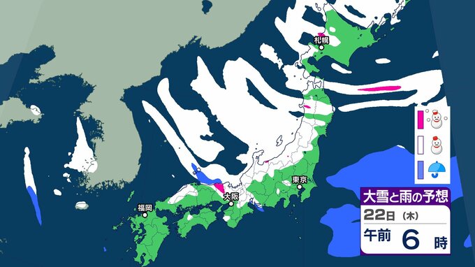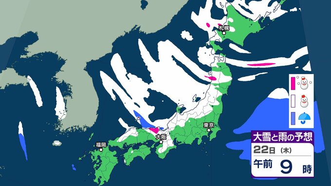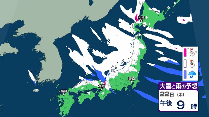 気象庁は、22日にかけて、北~西日本では、大雪や着雪、なだれ、落雷、突風、局地的には竜巻などの激しい突風に注意を。全国的に強風や風雪、高波に注意を呼びかけています。