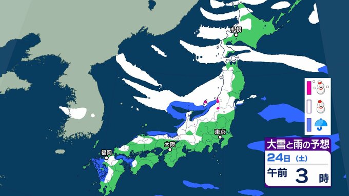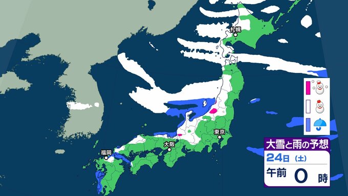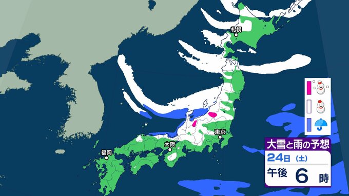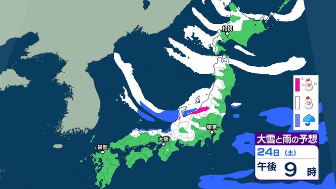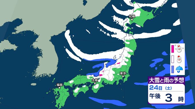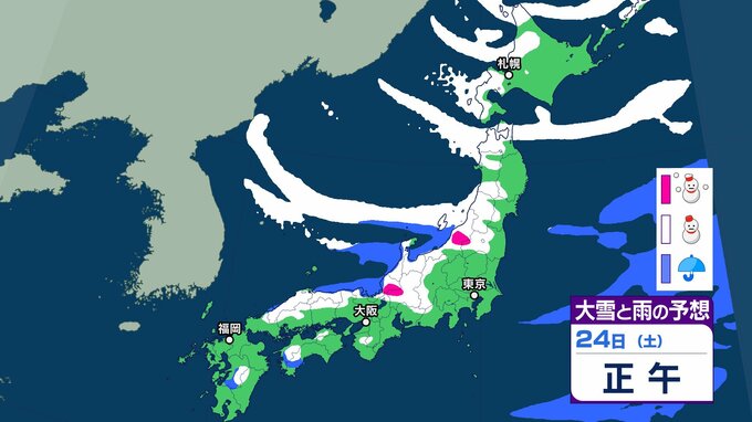 【雪の予想】21日18時からの24時間降雪量は北海道40 東北・北陸100 関東甲信・東海50 近畿・中国70(cm/多いところで)【気象庁 20日(火)~25日(日)の雪雨シミュレーション/20日午後8時更新】 RSK山陽放送 2026年1月20日(火) 20:00 国内 天気 24日(土) 24日は北陸などで大雪の予報となっています。また、四国地方や九州地方でも雪雲の予報となっています。 27 28 29 30 31 32 33 34
