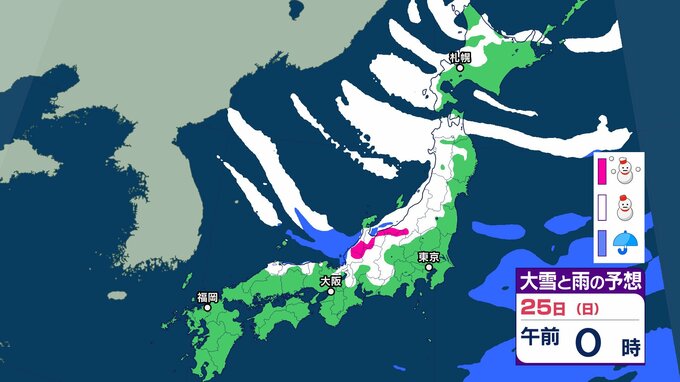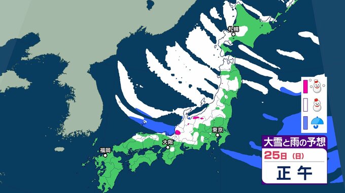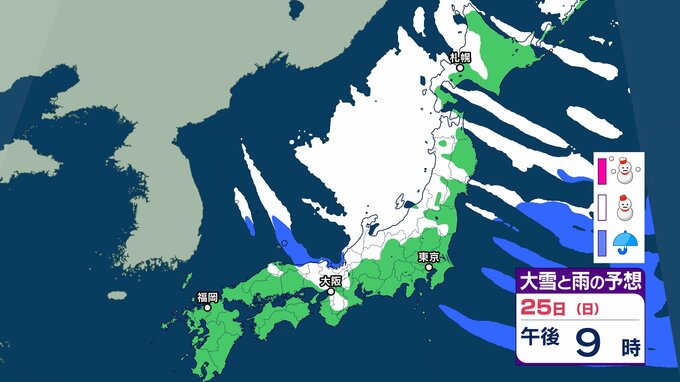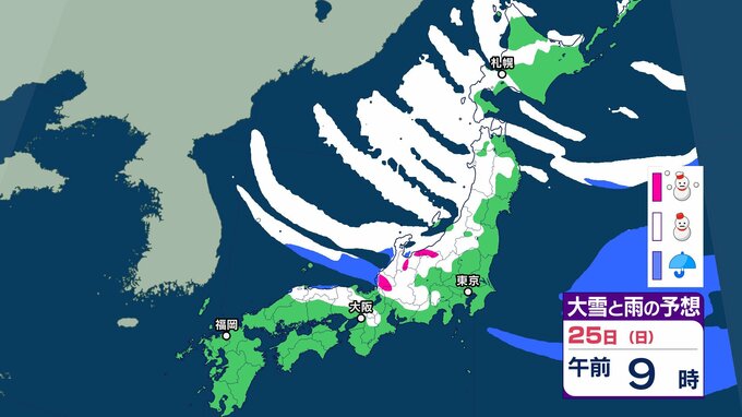気象庁は、25日頃にかけて、強い冬型の気圧配置が続くため、北日本から西日本の日本海側を中心に大雪が続き、積雪がさらに増えるおそれがあり、大雪や路面の凍結による交通障害に注意・警戒し、着雪やなだれに注意を呼びかけています。