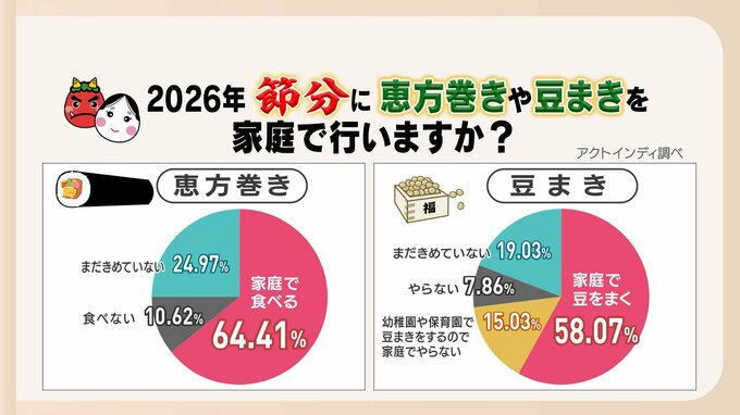 2026年節分に恵方巻きや豆まきを家庭で行いますか?