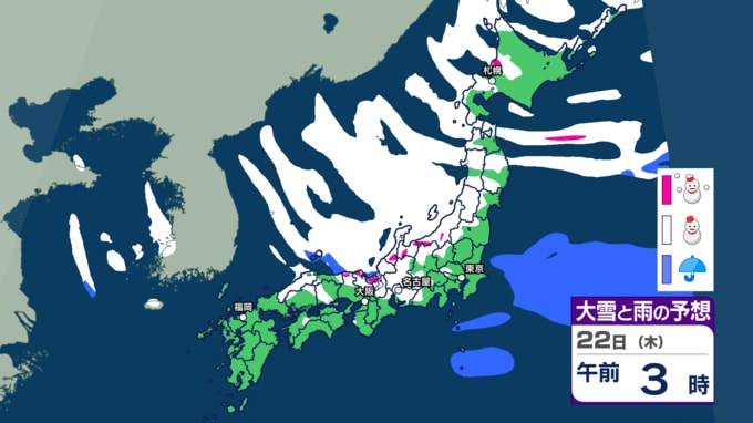 <21日から22日は、広範囲で大雪>関東甲信、東海、近畿などでも雪予想
