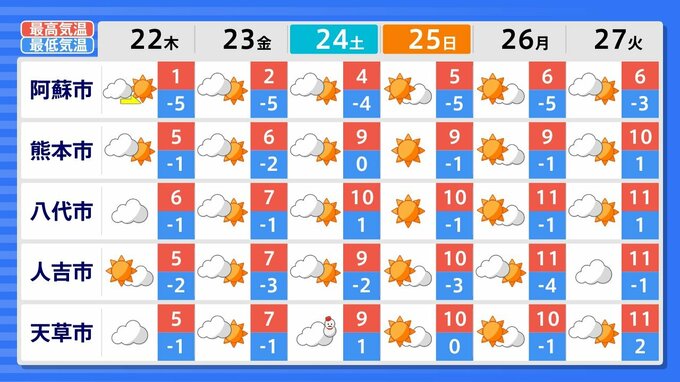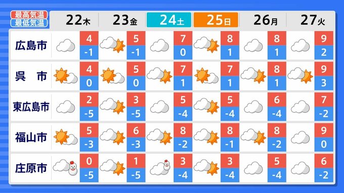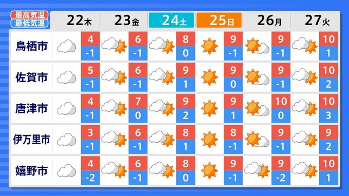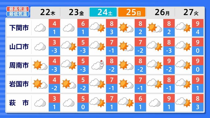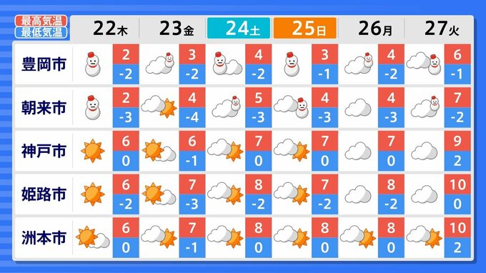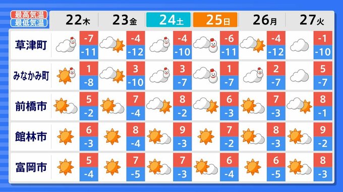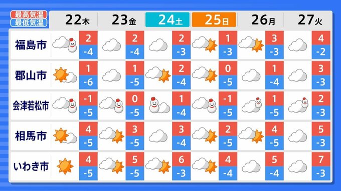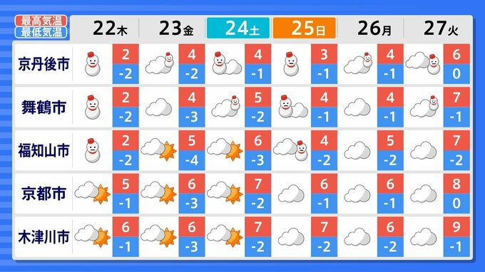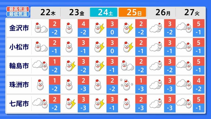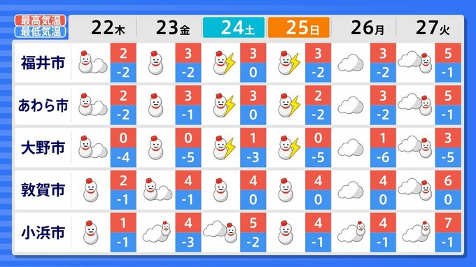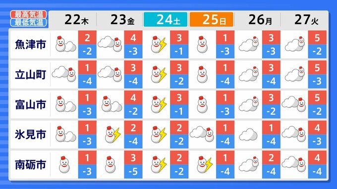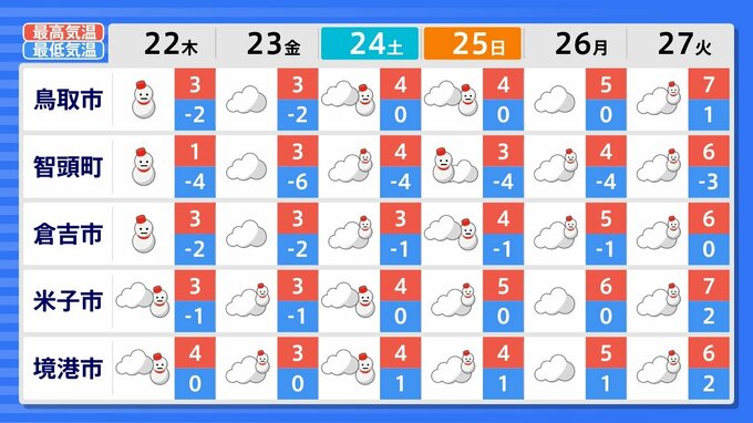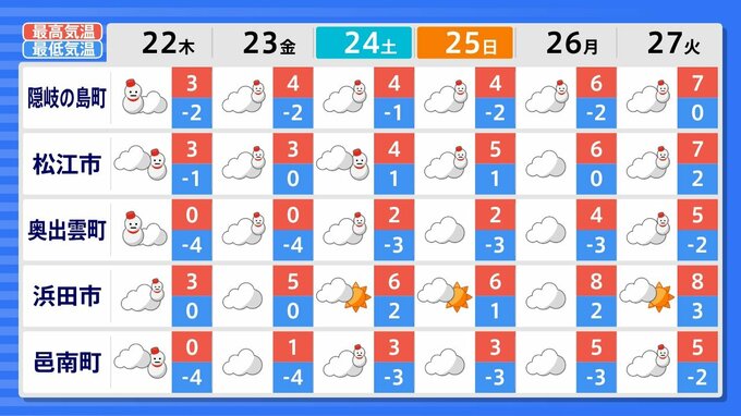 27日(火)までの週間天気予報で「雪マーク」が1日でも出ているのは、
