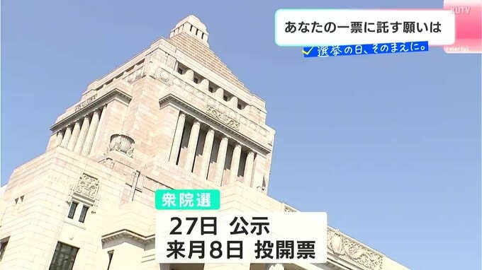 19日、高市総理は1月23日の衆議院解散を表明。総選挙は27日に公示され2月8日が投開票です。テレビ高知を始め、JNNでは有権者のみなさんの投票行動につながるための情報を「選挙の日、その前に」としてお伝えしていきます。20日は、県民のみなさんに聞いた一票に託したい政治への願いです。暮らしや、子どもの将来、安全、どんな悩みでも、政治に届けるのはあなたの一票です。