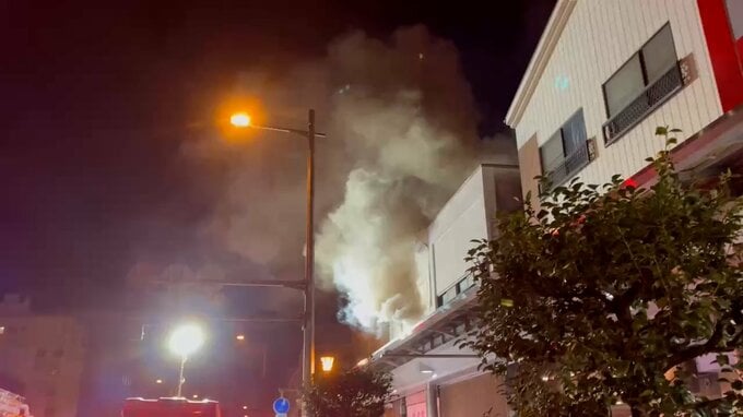 きょう午後6時50分ごろ、宮崎市橘通西の国道220号沿いのビルで火事があり、現在、消防が消火活動にあたっています。