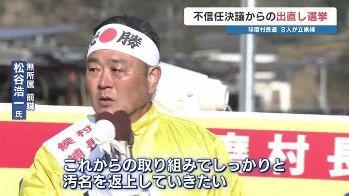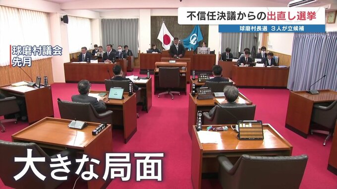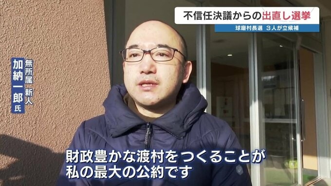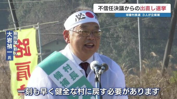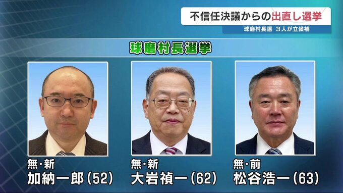 前の村長が不信任決議を受けて辞職したことに伴う異例の選挙に、3人が立候補しています。