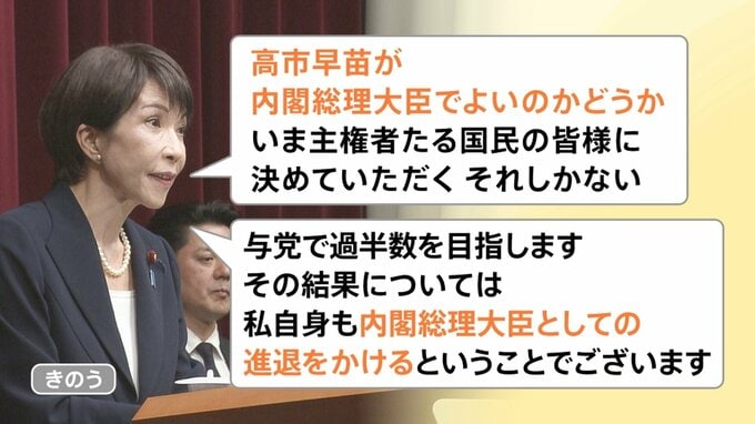 非常に力強いと思いましたが、「進退をかける」と発言する一方で、「自民党で単独過半数」ではなく「与党で過半数」としている部分に、少し不安があるようにも感じました。