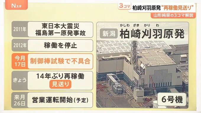 地元の同意を得て、再稼働に向けて動き出していましたが、1月17日に「制御棒の試験」で不具合が発生。20日に予定されていた再稼働が見送りとなりました。
