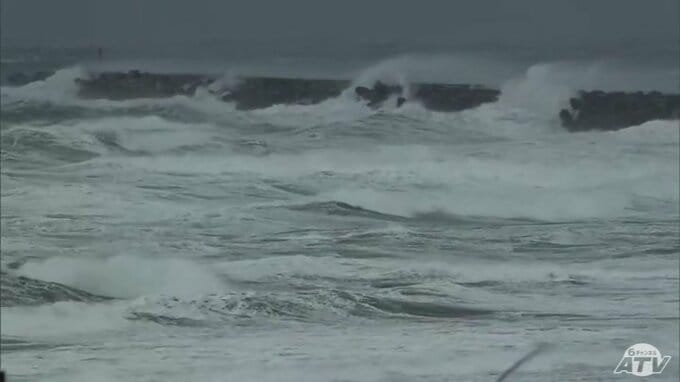 岸壁に打ち付ける波の水しぶきが高く上がっています。今シーズン最強、そして最も長く居座る寒波が襲来しました。