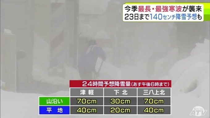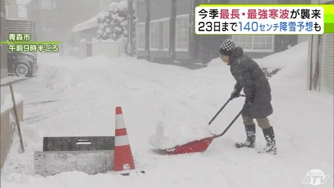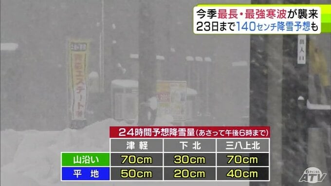 青森県内では事故や交通の乱れが相次いでいます。さらに23日までに津軽・三八上北の平地でも120cm~140cmの降雪が予想され、さらなる警戒が必要です。