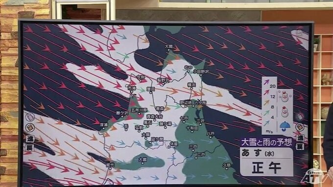 そのあとも同じような場所で雪が降り続くというところがあり、特に津軽地方や三八上北地方の山沿い方面では、21日の夕方にかけて70cmの雪が予想されています。また、里の方でも40cmの大雪が予想されています。