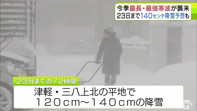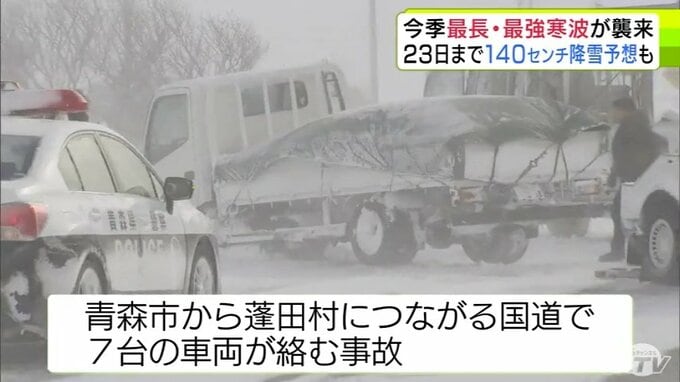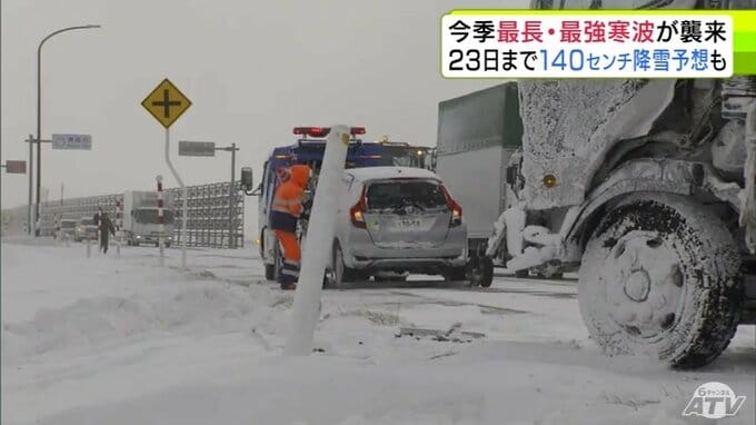 【雪の予想・20日午後10時前】青森県に今季“最強・最長”寒波 “数年に一度レベル”の長さで居座るか 23日までに平地120~140cmの降雪予想 車両7台絡む事故も発生 大雪シミュレーションあり 3時間前