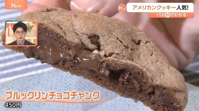 一番の人気は「ブルックリンチョコチャンク」(450円)。中にはチョコレートがたっぷりと入っていて、温めるとよりトロっとした味わいが楽しめるといいます。