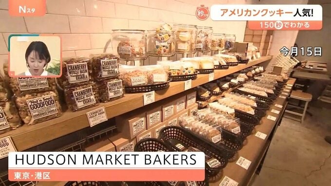 東京・港区のアメリカンスイーツ専門店「HUDSON MARKET BAKERS」。にぎわう店内には、大きくてしっとりとしたアメリカンクッキーが並んでいます。