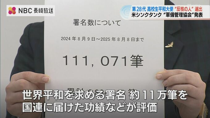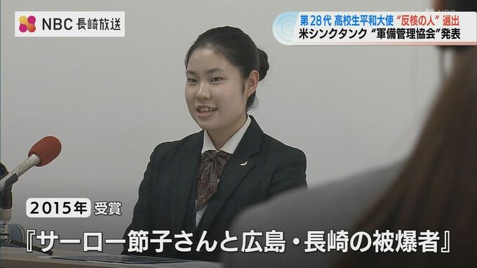 アメリカのシンクタンクが選ぶ軍縮に貢献した個人や団体をたたえる賞に、第28代の高校生平和大使が選ばれました。