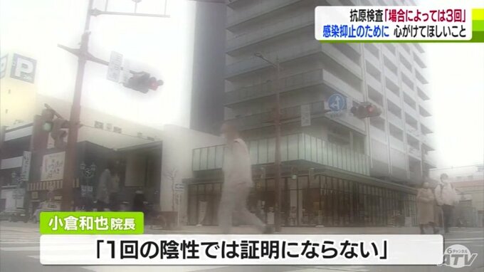 ※小倉院長「抗原検査もPCR検査もそうですが100パーセントではありません。「症状が出て1日2日目あたりは出にくいこともありますので、もう一度場合によっては3回検査するのが推奨されています」