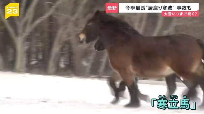 最低気温は氷点下6.5℃、厳しい寒さに耐える姿から「寒立馬(かんだちめ)」と呼ばれています。