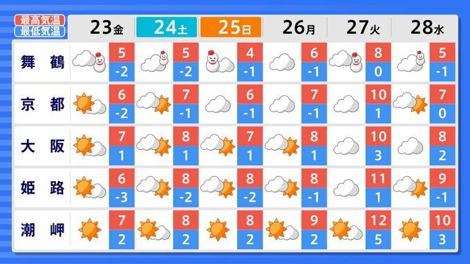 近畿地方では、21日昼過ぎから23日にかけて大雪となるでしょう。22日明け方から夜のはじめ頃は、京都府や兵庫県などで警報級の大雪となる見込みです。普段雪の少ない近畿中部の平地や兵庫県南部でも積雪となるおそれがあります。
