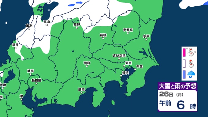 【東京首都圏 雪?】関東地方北部で大雪のおそれ 東京、神奈川、埼玉も一部で雪か【雪シミュレーション21日(水)~25日(日) / 関東各都市の週間予報】東京・神奈川・埼玉・千葉・群馬・茨城・栃木・山梨・長野【大雪予報】 南日本放送 2026年1月21日(水) 11:50 国内 この記事をはじめから → 【大寒寒波】 関東北部は大雪のおそれ 都心は?「雪シミュレーション」 (シミュレーションは実際の降り方とは異なる場合があります。最新の気象情報を確認してください。)