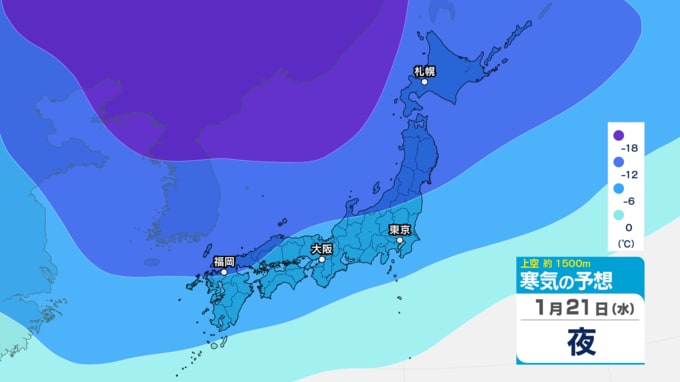 【東京首都圏 雪?】関東地方北部で大雪のおそれ 東京、神奈川、埼玉も一部で雪か【雪シミュレーション21日(水)~25日(日) / 関東各都市の週間予報】東京・神奈川・埼玉・千葉・群馬・茨城・栃木・山梨・長野【大雪予報】 南日本放送 2026年1月21日(水) 11:50 国内 寒気シミュレーション21日(水)~25日(日) 上空約1500mには「平地で雪」の目安の「氷点下6℃以下」の寒気が、関東地方に居座り続ける見込みです。21日(水)~22日(木)と25日(日)は寒気の流れ込みが強まり「氷点下9℃以下」の寒気も予想されています。 記事をはじめから → 【大寒寒波】 関東北部は大雪のおそれ 都心は?「雪シミュレーション」