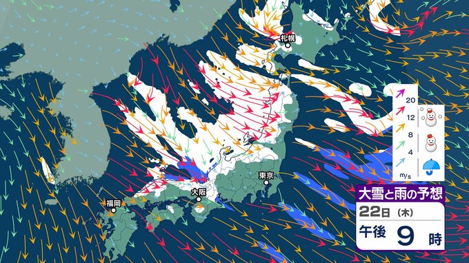 気象庁は22日、北陸地方から山陰にかけての日本海側を中心に降雪量がかなり多くなるおそれがあるとして大雪への警戒が必要だとしています。