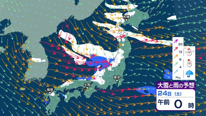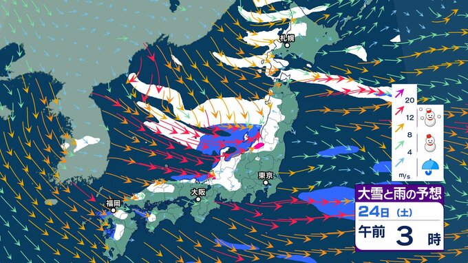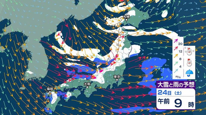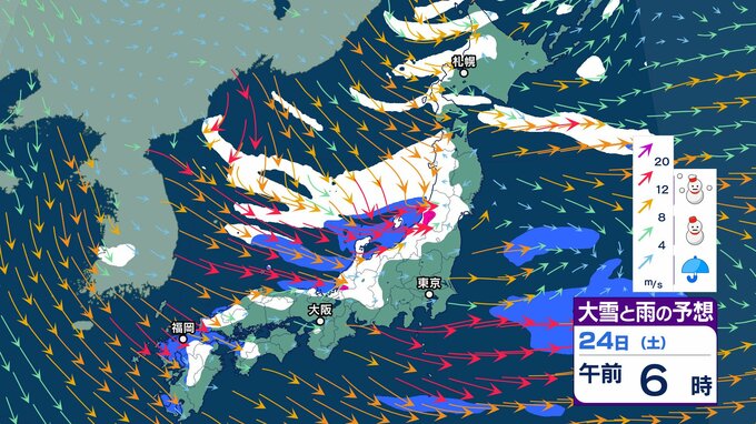 気象庁によりますと、23日6時から24日6時までに予想される24時間降雪量は多い所で、