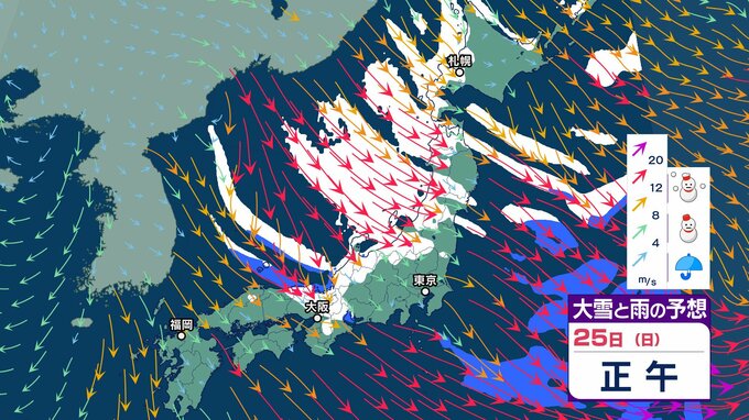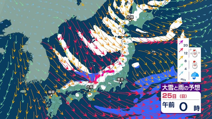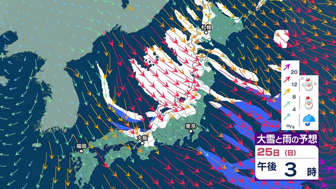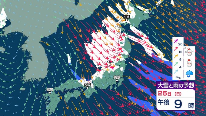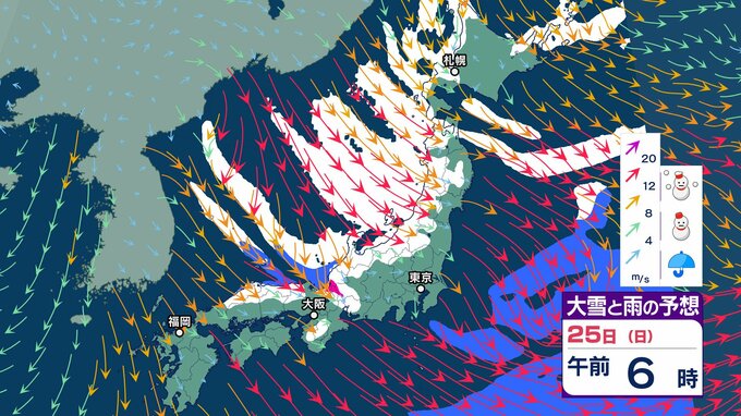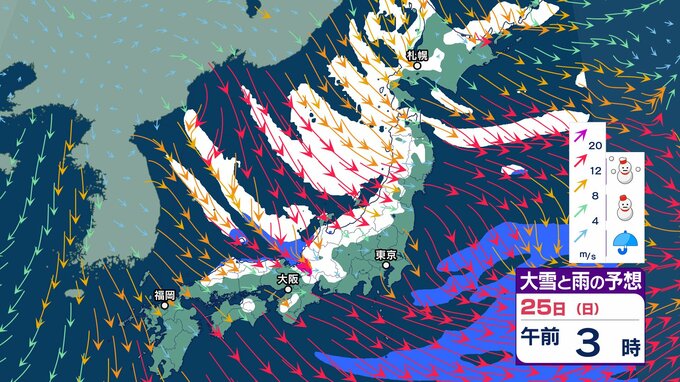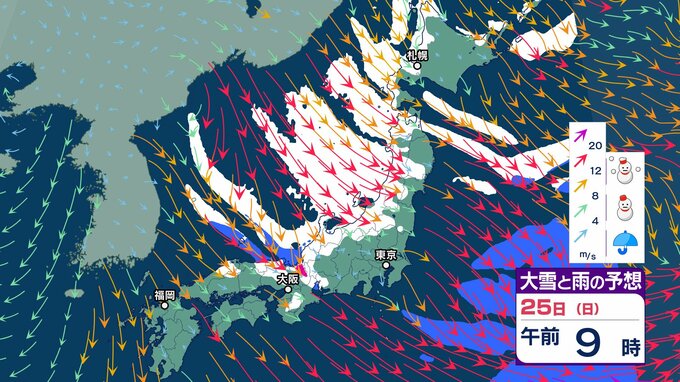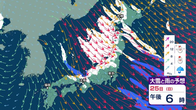 【雪の予報】25日(日)頃まで「居座り最強寒波」今夜は首都圏でも雪か? あすは近畿・東海で積雪による新幹線や高速道など交通機関への影響に注意・警戒を【気象庁 雪雨シミレーション 21日現在】 RSK山陽放送 2026年1月21日(水) 11:23 国内 天気 25日(日) 日本海側を中心に大雪の予報となっています。未明は「JPCZ」の影響で近畿・北陸地方では短時間で大雪になるおそれがあります。 ▶雪と雨のシミュレーション画像