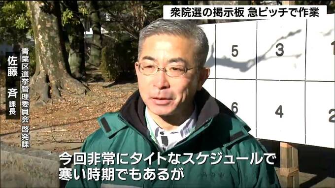 1月27日公示、2月8日投開票の衆議院議員選挙に向け、宮城県内では、候補者のポスターを貼る掲示板の設置作業が急ピッチで進められています。
