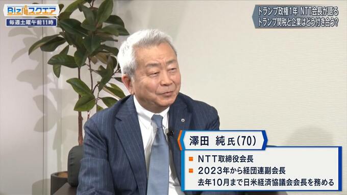 日米の財界人が経済の諸問題に対し意見交換・政策提言を行う「日米経済協議会」の会長を2025年10月まで4年間務めた、『NTT』の澤田 純会長(70)。