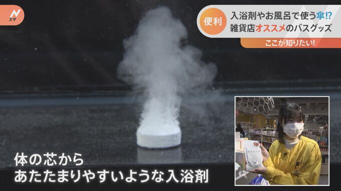 Nスタが取材したのは、およそ360種類の入浴剤を取り扱う「渋谷ロフト」。人気商品は「BARTH 9錠入り(990円)」。