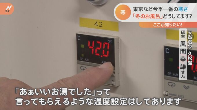 体をしっかり温めたいこの季節。東京・練馬区の「天然温泉 久松湯」では、その日の天候や気温にあわせて微妙な温度調節をしているといいます。