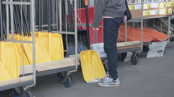 通常この時期は、除雪用のスコップは週に1本売れるかどうかということですが、今週はきょう午前までにすでに20本近く売れたということです。