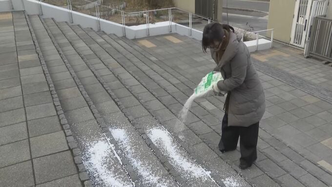一方、名古屋市名東区の東邦高校では、22日の入試を前に教職員らが校門前や構内の屋外階段に融雪剤を撒き、受験生の安全確保です。