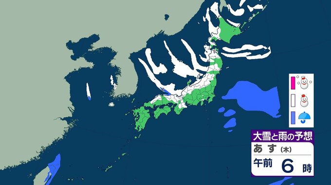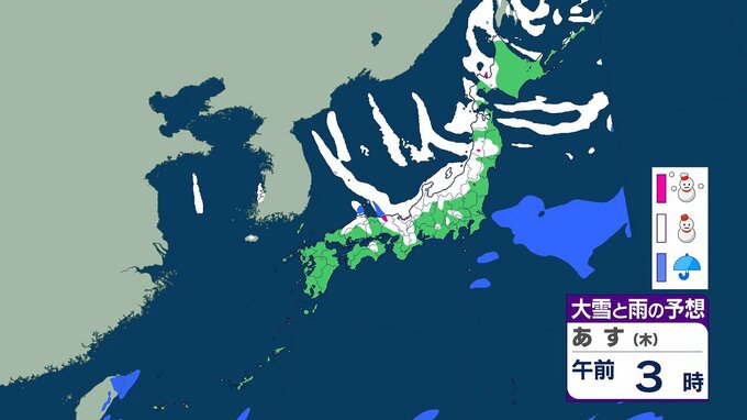 【大雪情報】25日にかけ大雪 北陸で最大100センチ 東北・近畿では70センチ予想 平地でも積雪 全国の3時間ごとの雪のシミュレーション(気象庁) テレビ山口 2026年1月21日(水) 15:46 国内 あす(22日)午前の雨と雪のシミュレーション