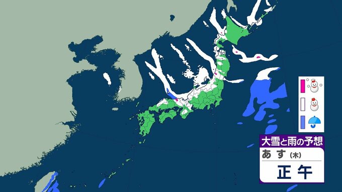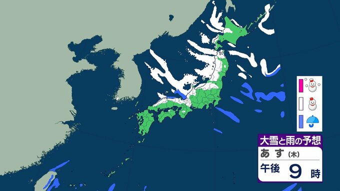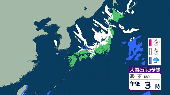 【大雪情報】25日にかけ大雪 北陸で最大100センチ 東北・近畿では70センチ予想 平地でも積雪 全国の3時間ごとの雪のシミュレーション(気象庁) テレビ山口 2026年1月21日(水) 15:46 国内 あす(22日)午後の雨と雪のシミュレーション