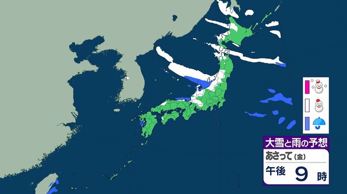 【大雪情報】25日にかけ大雪 北陸で最大100センチ 東北・近畿では70センチ予想 平地でも積雪 全国の3時間ごとの雪のシミュレーション(気象庁) テレビ山口 2026年1月21日(水) 15:46 国内 あさって(23日)午後の雨と雪のシミュレーション