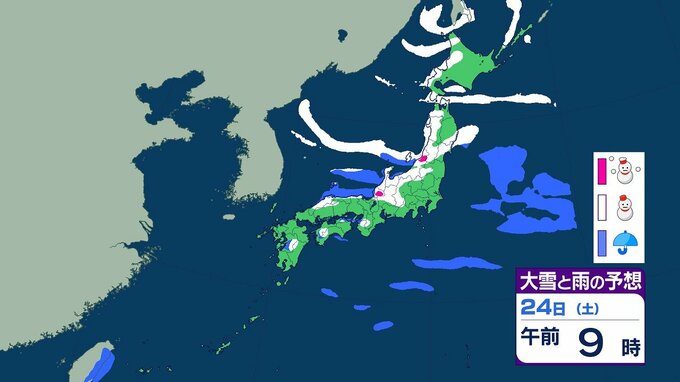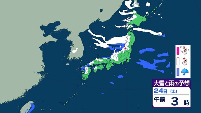 【大雪情報】25日にかけ大雪 北陸で最大100センチ 東北・近畿では70センチ予想 平地でも積雪 全国の3時間ごとの雪のシミュレーション(気象庁) テレビ山口 2026年1月21日(水) 15:46 国内 24日午前の雨と雪のシミュレーション