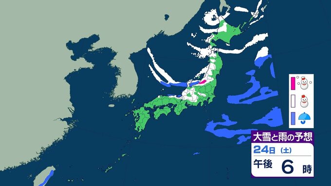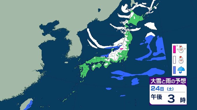 【大雪情報】25日にかけ大雪 北陸で最大100センチ 東北・近畿では70センチ予想 平地でも積雪 全国の3時間ごとの雪のシミュレーション(気象庁) テレビ山口 2026年1月21日(水) 15:46 国内 24日午後の雨と雪のシミュレーション