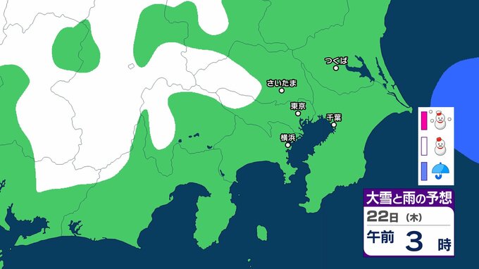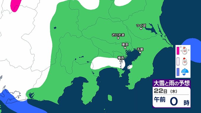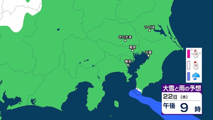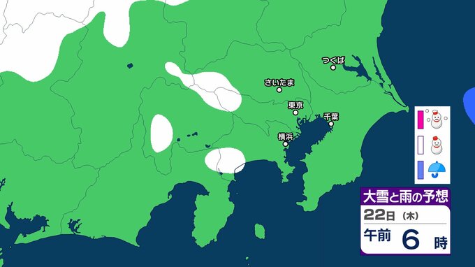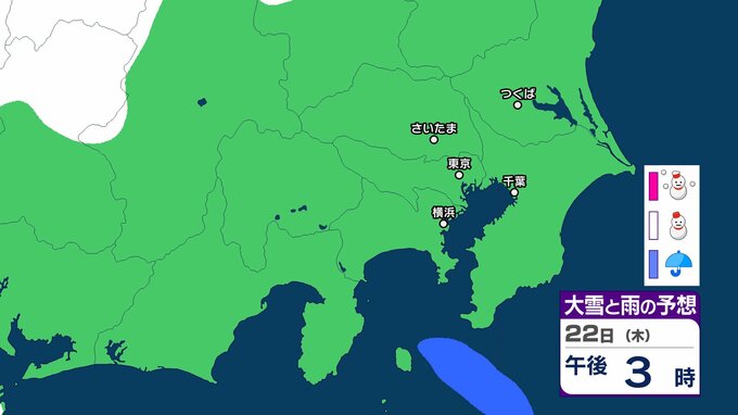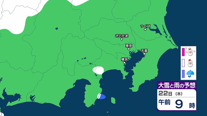 【東京の雪予報】あす(22日)東京・埼玉・横浜に雪雲が...今夜(21日)は神奈川・千葉で雪か 交通への影響に注意を / 東京・横浜・千葉・さいたま・つくば 21日~25日雪雨シミュレーショ【気象庁/21日午後4時更新】 RSK山陽放送 2026年1月21日(水) 16:40 国内 天気 22日(木) シミュレーションでは未明から早朝にかけて、埼玉県、東京都、神奈川県の一部地域で雪雲が見られます。 ▶雪と雨のシミュレーション