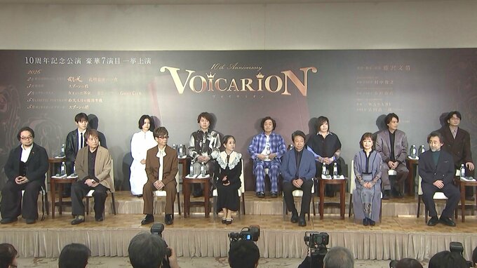 音楽朗読劇 『VOICARION 10周年記念公演』の製作発表会見に、竹下景子さん、井上和彦さん、山寺宏一さん、沢城みゆきさんら歴代キャストと、原作・脚本・演出の藤沢文翁さんが登壇しました。