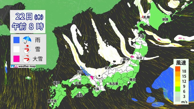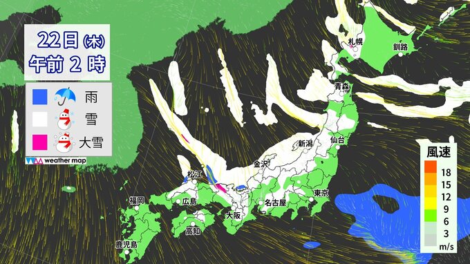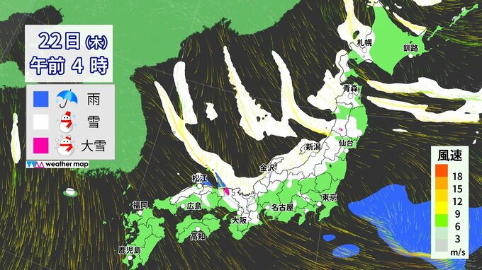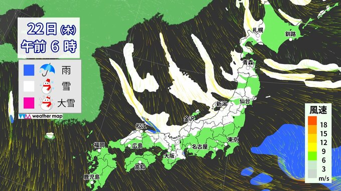 【関西の雪どうなる?】22日(木)明け方から夜のはじめ頃にかけて大雪に注意・警戒…