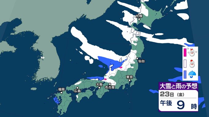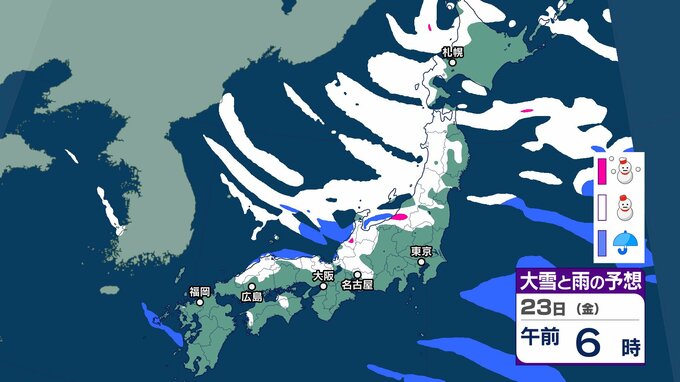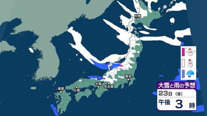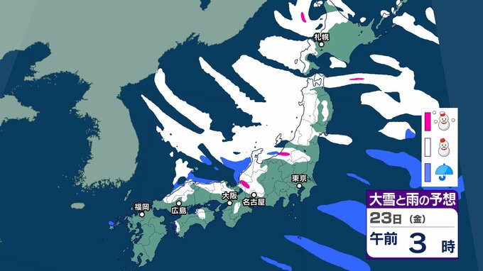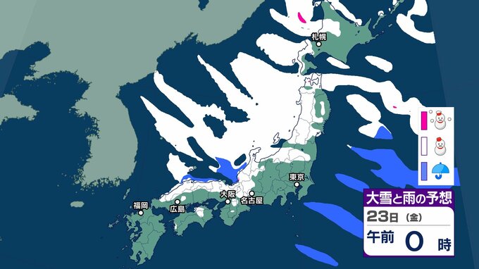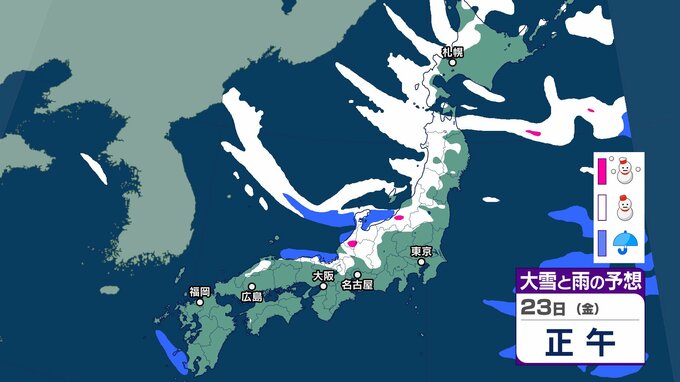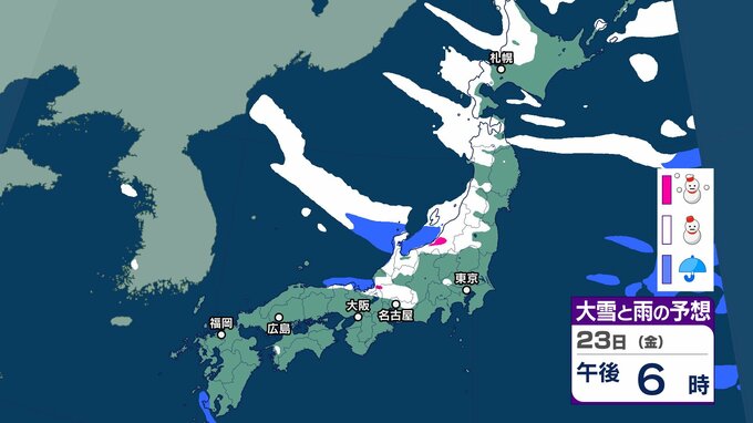 23日18時から24日18時までに予想される24時間降雪量は多い所で、