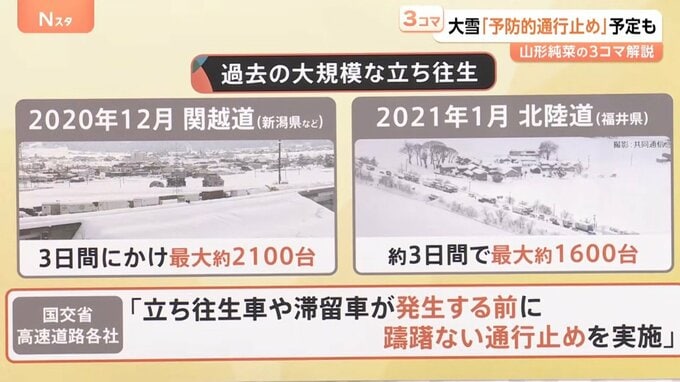 このような事態を受け、国土交通省や高速道路各社は「立ち往生車や滞留車が発生する前に躊躇ない通行止めを実施する」としています。