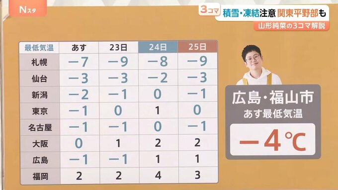 ・広島:-1℃