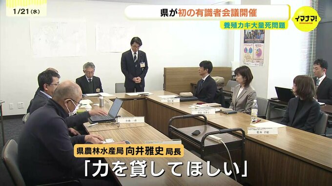 県内で養殖カキが大量死している問題で、県は原因の調査分析を行う有識者会議を開きました。